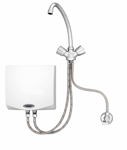 Pre jednoduchší nákup je el. prietokový ohrievač vody HAKL MK SET dodávaný spolu s vodovodnou beztlakovou stojankovou klasickou batériou HAKL, výtokové ramienko 22 cm.