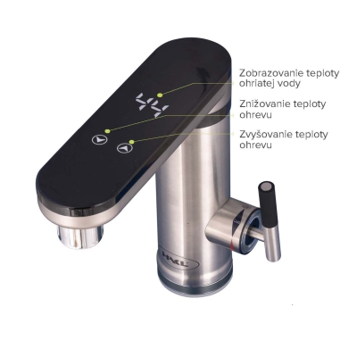 Elektrická priamoohrevná drezová stojanková vodovodná batéria.