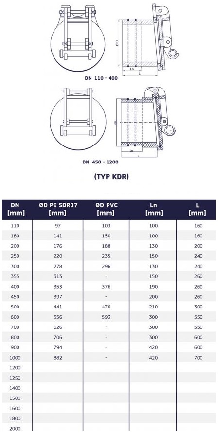 Koncová klapka KDR slúži k ochrane objektov umiestneniach blízkosti vodnou tokov a nádrží. Chráni kanalizačný systém pred jeho spätným zaplavením pri výdatných dažďoch, búrkach a záplavách.
