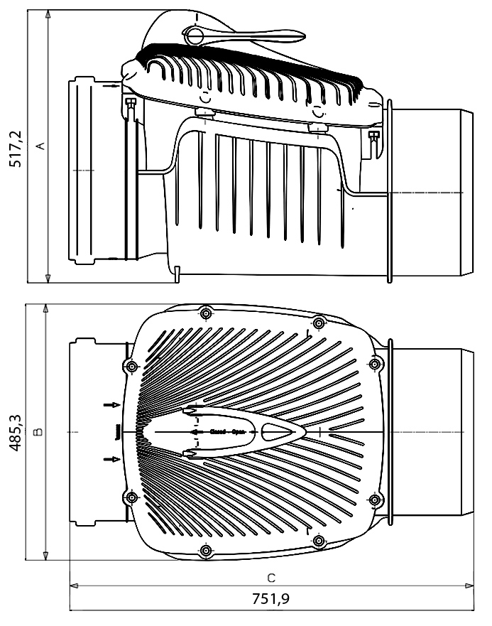 KARMAT kanalizačná spätná klapka priebežná DN 315, ZB315