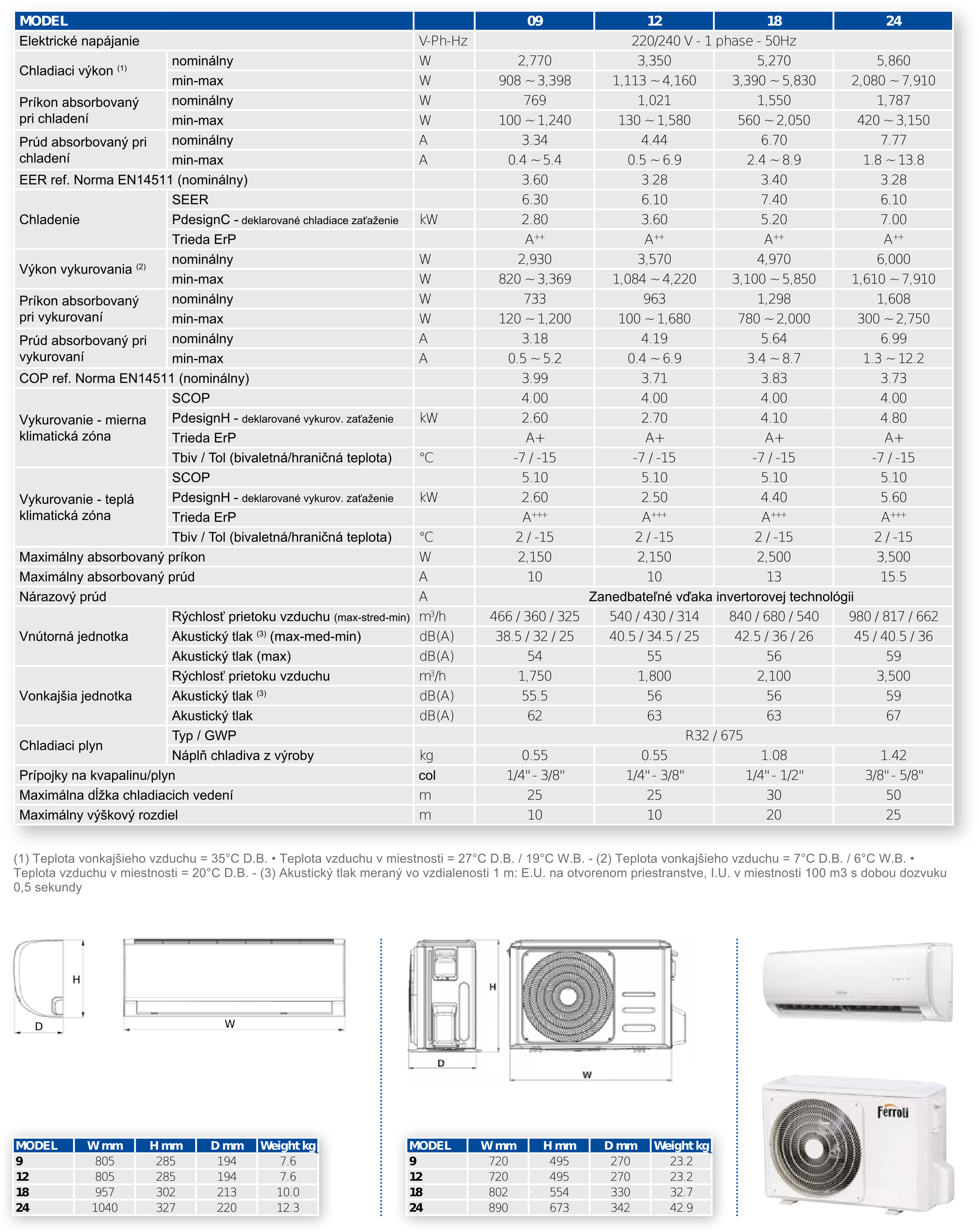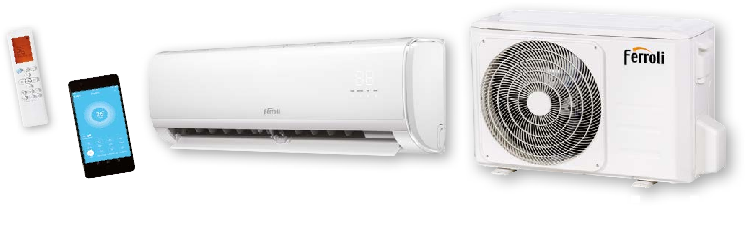dosiahnuť triedu účinnosti A++ v režime chladenia a A+ v režime vykurovania (pre typické pásmo priemerných teplôt). Všetky spotrebiče sú dodávané aj s Wi-Fi pripojením, vďaka ktorému je možné pripojiť sa na diaľku pomocou Ferroli App. Okrem toho je nový rad teraz kompatibilný s hlasovými asistentmi „Amazon Alexa“ a „Google Home“. Dodávané diaľkové ovládanie (s väčším displejom podľa požiadaviek