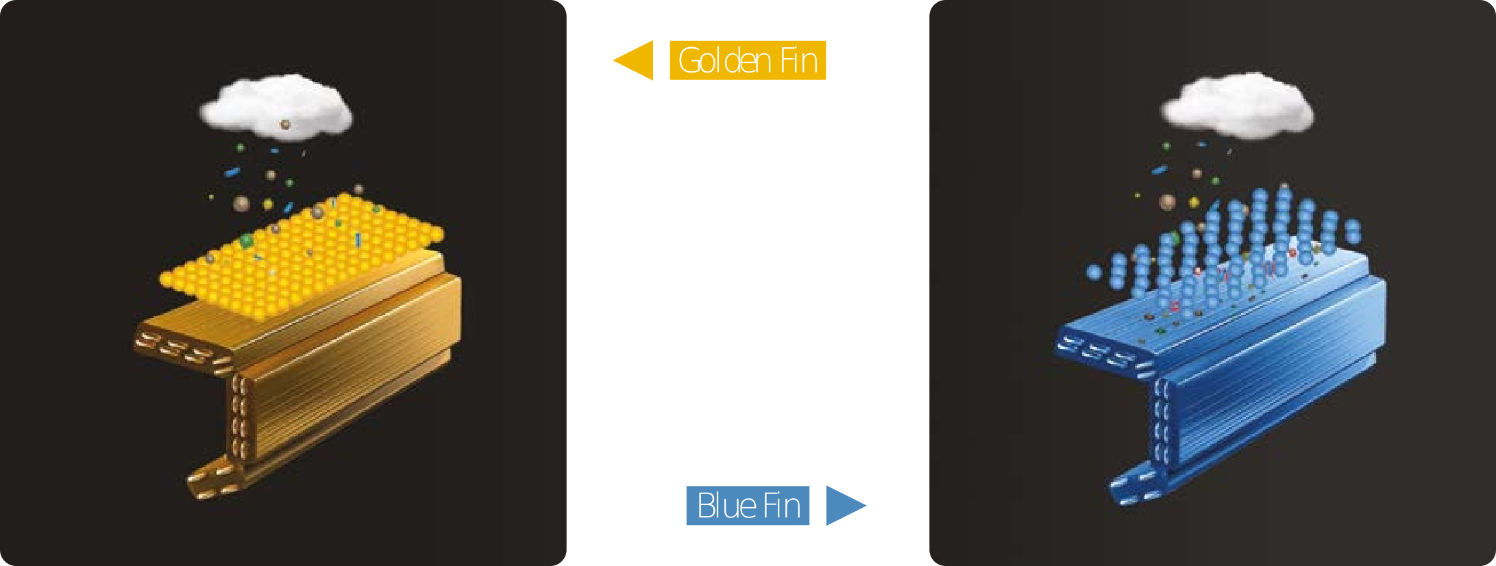 Vonkajší výmenník má špeciálnu úpravu nazývanú Golden Fin, ktorá zaručuje lepšiu ochranu (v porovnaní s rozšírenejšími úpravami, ako je Blue Fin) pred vonkajšími vplyvmi, či už chemickými alebo