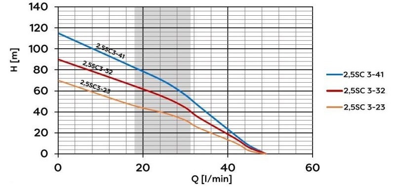 Ponorné čerpadlá 2,5SC sú zariadenia s priemerom 68 mm, určené na inštaláciu do úzkych studní s priemerom minimálne 75 mm. Sú určené na čerpanie čistej, studenej vody bez pevných brúsnych, alebo dlhovláknitých prvkov.
