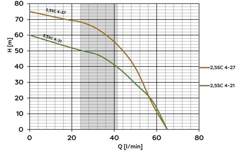Ponorné čerpadlá 2,5SC sú zariadenia s priemerom 68 mm, určené na inštaláciu do úzkych studní s priemerom minimálne 75 mm. Sú určené na čerpanie čistej, studenej vody bez pevných brúsnych, alebo dlhovláknitých prvkov.
