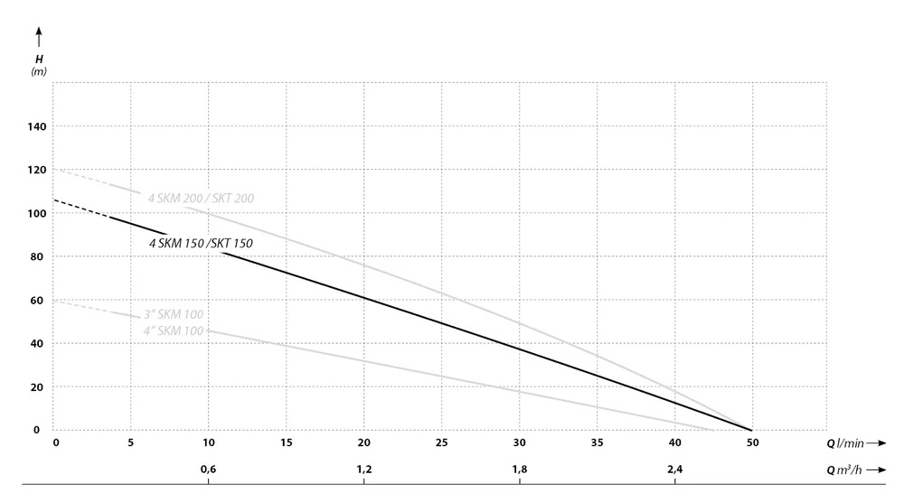 Ponorné čerpadlá 4”SKM 100, 150, 200 sú 4” palcové čerpadlá s priemerom 98 mm a sú určené pre vrty s minimálnym priemerom 120mm.